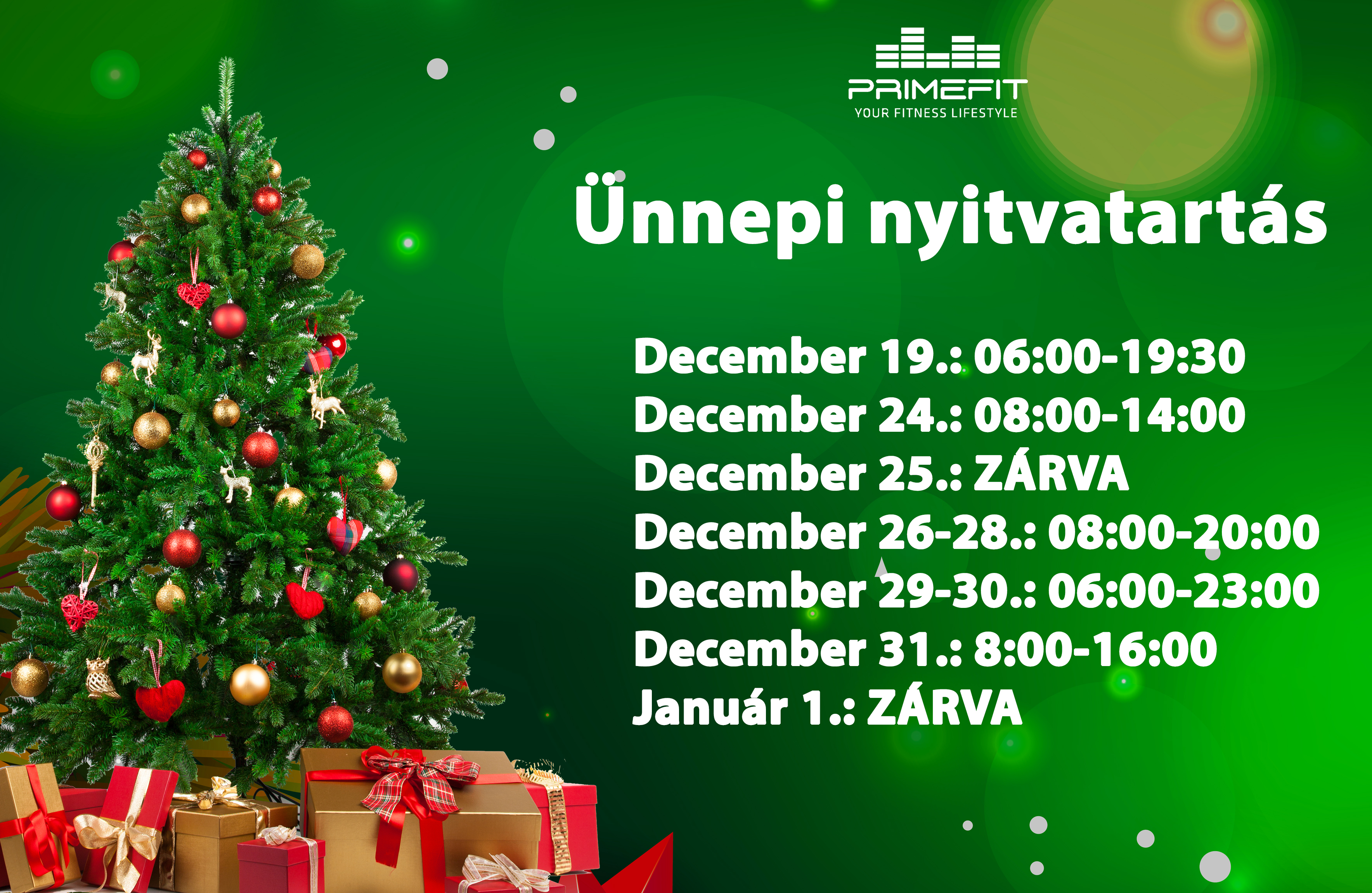 Az ünnepi időszak alatt az alábbi nyitvatartással várunk Benneteket: